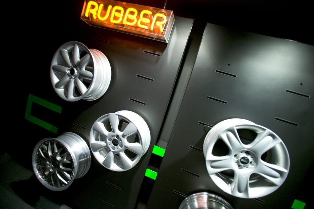 Personality and individuality are key to the Mini philosophy and the lighting reflects this with bespoke self-illuminated signage contrasting with predominantly pitch black wall surfaces. A double height nightscape of London provides a superb backdrop lit by controlled spotlighting.