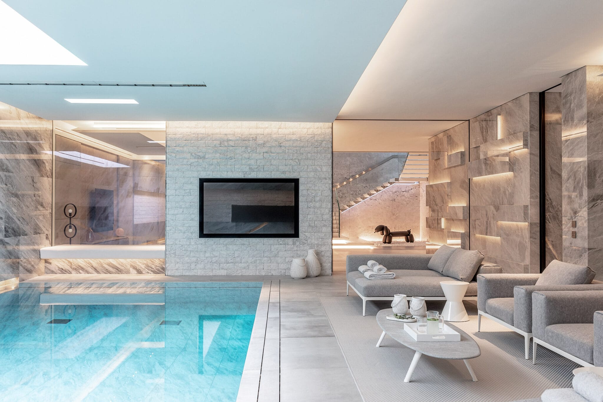 IO House challenges the typical stereotype of a family home by incorporating the Client’s passion for technology, innovation and fun. Whilst KSR Architects & Interior Designers navigated the challenges of designing a 2,000 sqm home nestled in a North London conservation area, dpa were fortunate to have designed the lighting for this stunning property working closely with all disciplines on every aspect of the lighting. The new-build house appears as a single storey dwelling on first approach, however KSR have cleverly hidden two lower levels within the carefully curated landscaped gardens (designed by Randle Siddeley) to conceal the building from neighbours, and provide privacy for the family.