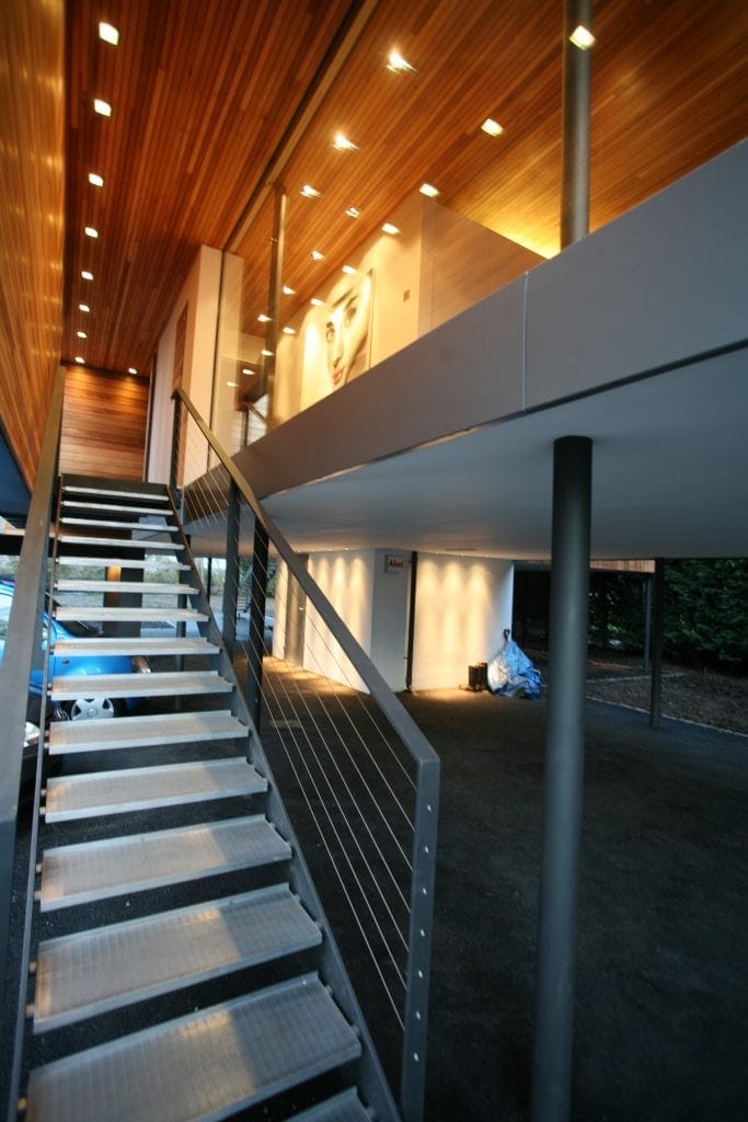 This unique contemporary designed riverside property has been lit using a combination of recessed downlights, concealed uplights and classic decorative fixtures.