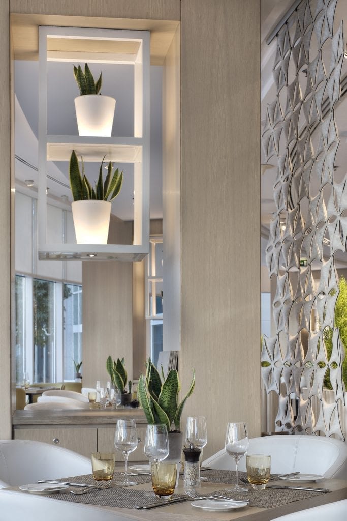 dpa lighting consultants were commissioned to design the lighting for all the interiors, including the Guest Bedrooms and Suites, a Jazz Bar, Night Club, Speciality Restaurant, an extensive Spa and the impressive Atrium Lobby which is bathed in daylight during the day and is then transformed into a dramatic and stunning space at night, the lighting of which provided the dpa Team with unique challenges.