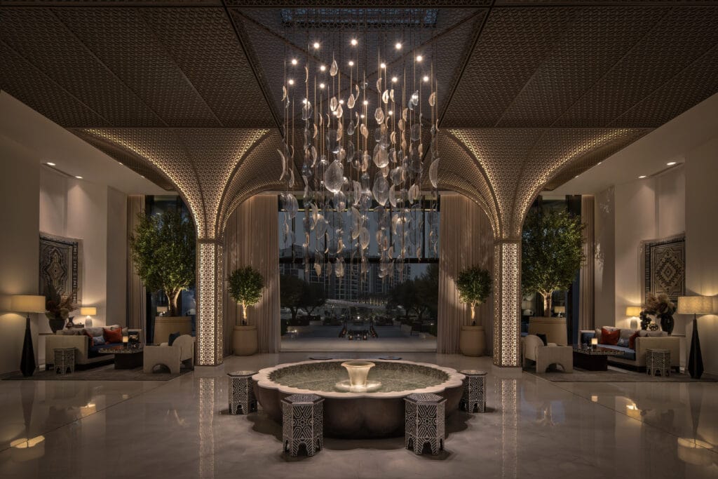 Situated in the heart of the major new neighbourhood of Dubai Creek Harbour, the Palace Dubai Creek Harbour is Emaar’s latest luxury hospitality destination. The architecture and interior are a blend of contemporary and traditional Arab styling with clean lines and rich selection of materiality.