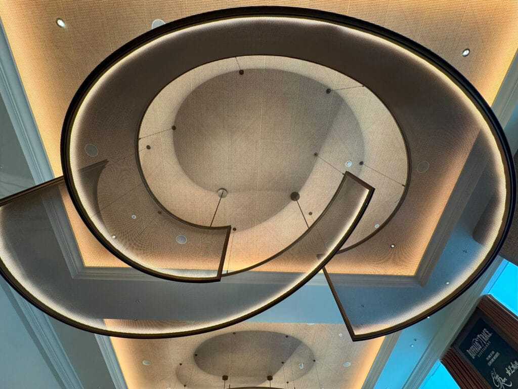 The various lighting components are balanced in intensity via the architectural lighting control system, which provides dimming and is programmed to facilitate a palette of lighting ambiances that are curated and correspond to the venue, functionality, and time of day.